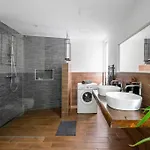 Guests are provided with a sofa, along with a variety of media options, including a television. Beds fitted with down pillows are at guests' disposal. A bathroom is equipped with a bidet, a walk-in shower, and a separate toilet, as well as a hairdryer and bath sheets.